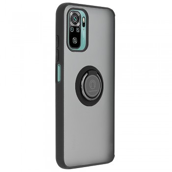 Design pouzdra Techsuit Glinth v černé barvě kombinuje eleganci s praktičností. Zadní strana je vyrobena z průsvitného, kouřově šedého materiálu, který decentně prosvítá a zároveň chrání. Okraje pouzdra jsou zesílené a v matně černé barvě, což zajišťuje lepší úchop a zvýšenou odolnost proti nárazům. Dominantním prvkem je integrovaný kovový kroužek na zadní straně, který slouží jako praktický stojánek nebo držák pro bezpečnější manipulaci s telefonem. Tento kroužek je navíc magneticky kompatibilní, což umožňuje snadné připevnění k magnetickým držákům v autě či jinde. Výřez pro fotoaparát je precizně zpracovaný a kopíruje obdélníkový tvar modulu fotoaparátu, což zajišťuje plnou funkčnost bez omezení.