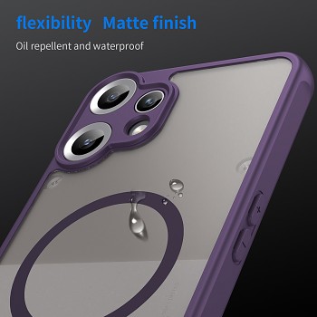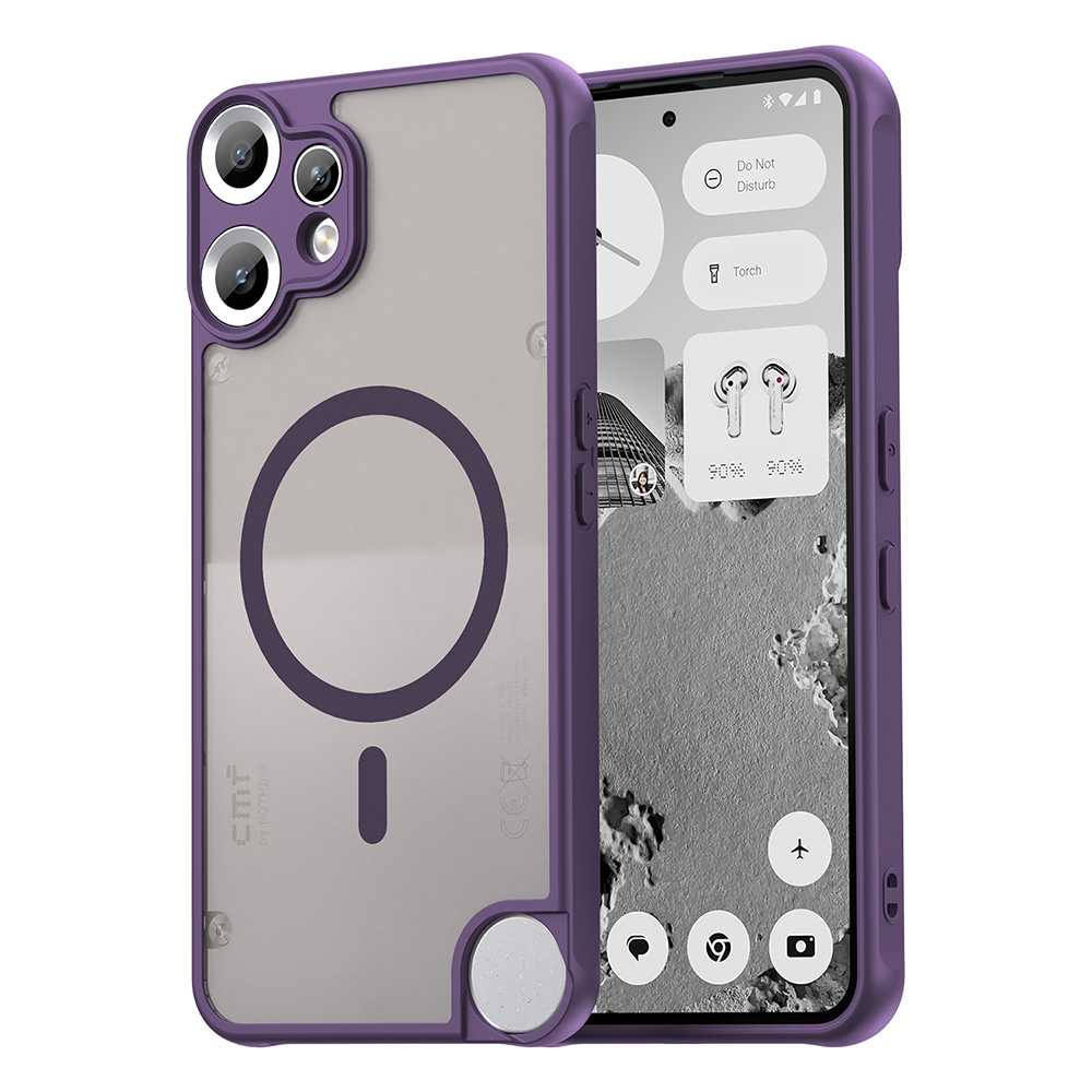 Pouzdro Techsuit HaloFrost II MagSafe se pyšní transparentním zadním panelem, který nechává vyniknout originální design vašeho Nothing CMF Phone 2 Pro. Okraje pouzdra a modul fotoaparátu jsou vyvedeny v elegantní fialové barvě, která dodává telefonu osobitý a stylový vzhled. Integrovaný MagSafe kroužek je decentně zvýrazněn, což podtrhuje moderní funkčnost pouzdra. Celkový design je minimalistický, ale zároveň vysoce funkční, s důrazem na ochranu a uživatelský komfort.
