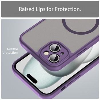 Pouzdro Techsuit HaloFrost II MagSafe se pyšní sofistikovaným vzhledem, který podtrhne eleganci vašeho telefonu. Zadní strana krytu je vyrobena z průsvitného matného materiálu v šedém odstínu, který decentně prosvítá logo Apple a zároveň chrání před otisky prstů a drobnými škrábanci. Okraje pouzdra a rámeček kolem modulu fotoaparátu jsou v atraktivní fialové barvě, která dodává celkovému designu šmrnc a osobitost. Na zadní straně je integrován výrazný MagSafe kroužek, který zajišťuje perfektní kompatibilitu s MagSafe příslušenstvím a bezdrátovým nabíjením. Přesné výřezy pro konektory, mikrofony, reproduktory a fotoaparáty zaručují neomezenou funkčnost vašeho zařízení, zatímco tlačítka mají jistý a příjemný stisk.