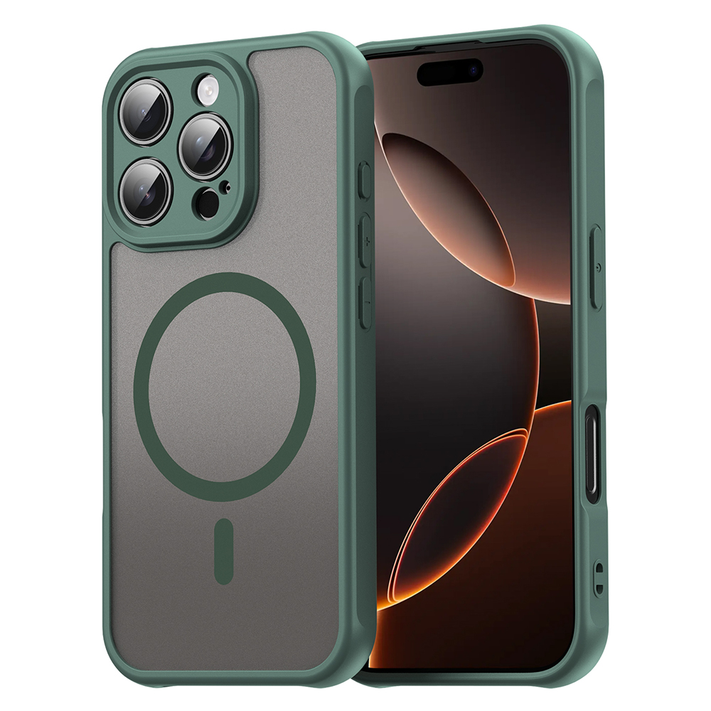 Pouzdro Techsuit HaloFrost II MagSafe v elegantní zelené barvě je navrženo tak, aby dokonale doplnilo váš iPhone 16 Pro a zároveň mu poskytlo komplexní ochranu. Jeho design kombinuje robustní zelený rám s průsvitnou, matnou zadní stranou, která decentně odhaluje původní barvu telefonu a dodává mu sofistikovaný vzhled.