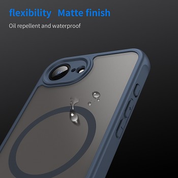 Design pouzdra HaloFrost II MagSafe se vyznačuje průsvitnou matnou zadní stranou, která decentně odhaluje originální design telefonu, zatímco námořnicky modrý rámeček dodává pouzdru sofistikovaný vzhled. Integrovaný MagSafe kroužek zajišťuje perfektní kompatibilitu s MagSafe příslušenstvím a bezdrátovým nabíjením. Pouzdro je navrženo s vyvýšenými okraji kolem fotoaparátu a displeje, což poskytuje dodatečnou ochranu proti poškrábání a nárazům. Zesílené rohy s "airbagy" efektivně absorbují nárazy při pádech a chrání tak váš telefon před poškozením. Materiál pouzdra je flexibilní a má matný povrch, který je odolný proti otiskům prstů, odpuzuje olej a je voděodolný.