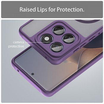 Pouzdro Techsuit HaloFrost II MagSafe v elegantní fialové barvě se vyznačuje moderním a promyšleným designem. Jeho zadní strana je tvořena průsvitným, matným povrchem, který decentně odhaluje původní krásu telefonu a zároveň je odolný proti otiskům prstů a mastnotě. Fialový rámeček a modul kolem fotoaparátů dodávají pouzdru výrazný a stylový vzhled. Integrovaný MagSafe kroužek na zadní straně zajišťuje bezproblémovou kompatibilitu s MagSafe příslušenstvím, což rozšiřuje možnosti používání vašeho telefonu. Pro maximální ochranu jsou okraje pouzdra zvýšené kolem displeje i fotoaparátů, což efektivně chrání tyto nejzranitelnější části před poškrábáním a nárazy. Navíc, zesílené rohy s "airbagy" poskytují dodatečnou absorpci nárazů při pádech, čímž minimalizují riziko poškození. Tlačítka jsou navržena pro flexibilní a jistý stisk, což zajišťuje pohodlné ovládání bez omezení.