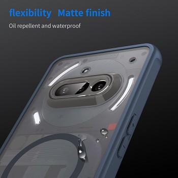 Pouzdro HaloFrost II MagSafe se pyšní promyšleným designem, který dokonale doplňuje estetiku Nothing Phone (3a). Jeho námořnicky modrý rám elegantně obepíná telefon, zatímco poloprůhledná matná zadní strana umožňuje vyniknout ikonickému Glyph rozhraní a originálnímu vzhledu vašeho zařízení. Integrovaný MagSafe kroužek zajišťuje bezproblémovou kompatibilitu s MagSafe příslušenstvím a bezdrátovým nabíjením.