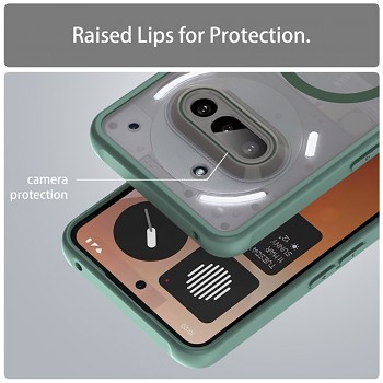 Pouzdro Techsuit HaloFrost II MagSafe se pyšní promyšleným designem, který podtrhuje jedinečnost vašeho Nothing Phone (3a). Zadní strana pouzdra je průhledná s jemným matným efektem, což umožňuje vyniknout originálnímu designu telefonu a jeho ikonickému rozhraní Glyph. Okraje pouzdra jsou vyvedeny v elegantní zelené barvě, která dodává celku sofistikovaný vzhled a zároveň zajišťuje pevný úchop. Integrovaný MagSafe kroužek v zelené barvě na zadní straně zaručuje bezproblémovou kompatibilitu s MagSafe příslušenstvím a rychlé bezdrátové nabíjení. Precizní výřezy pro fotoaparáty, konektory a reproduktory jsou samozřejmostí, stejně jako citlivá tlačítka, která si zachovávají svůj jistý stisk.
