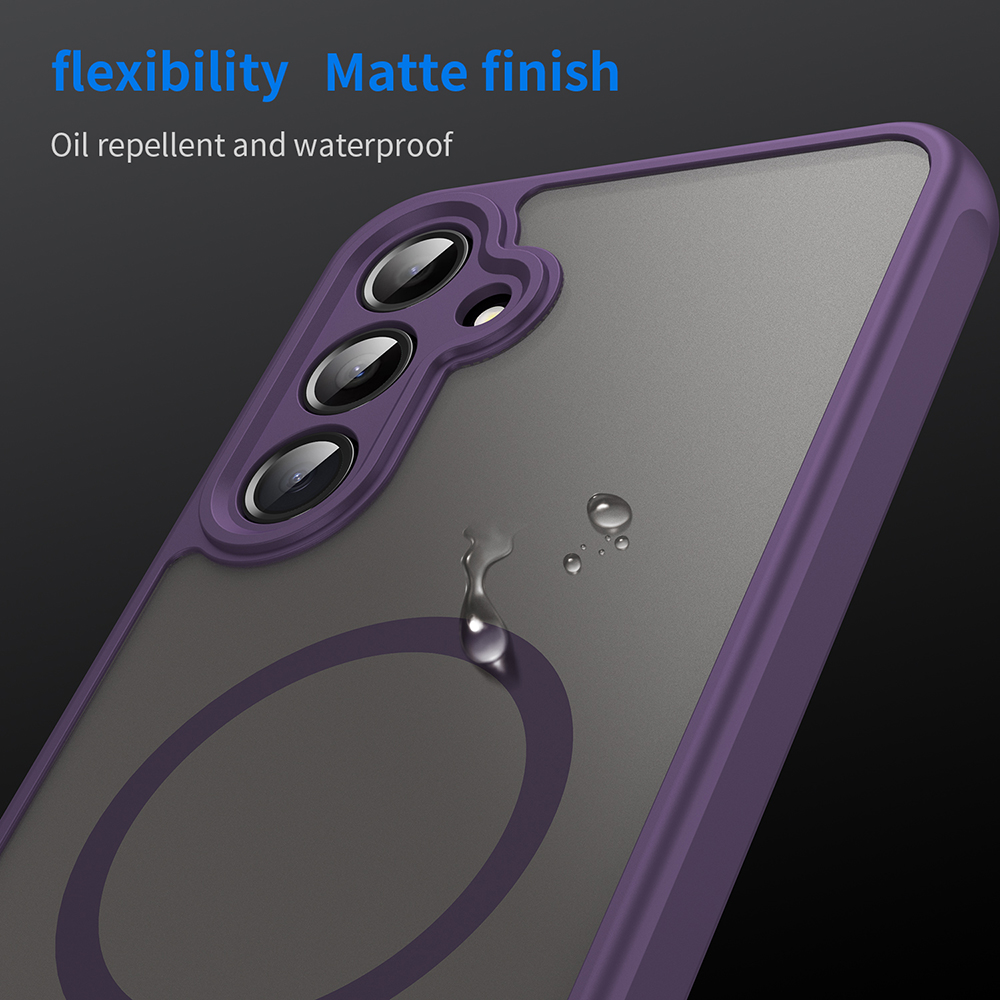 Pouzdro Techsuit HaloFrost II MagSafe se vyznačuje sofistikovaným vzhledem, který podtrhuje krásu vašeho telefonu. Zadní strana je vyrobena z průsvitného, matného materiálu v elegantním šedém odstínu, který decentně prosvítá a zároveň chrání před otisky prstů a drobnými škrábanci. Okraje pouzdra a detailní výřezy pro fotoaparát jsou provedeny v sytě fialové barvě, která dodává pouzdru dynamický a svěží vzhled. Integrovaný MagSafe kroužek na zadní straně, rovněž ve fialové barvě, zajišťuje bezproblémovou kompatibilitu s MagSafe příslušenstvím a bezdrátovým nabíjením. Přesné výřezy pro konektory, mikrofony, reproduktory a fotoaparáty zaručují plnou funkčnost telefonu bez omezení. Tlačítka jsou krytá, ale zachovávají si jistý a příjemný stisk.