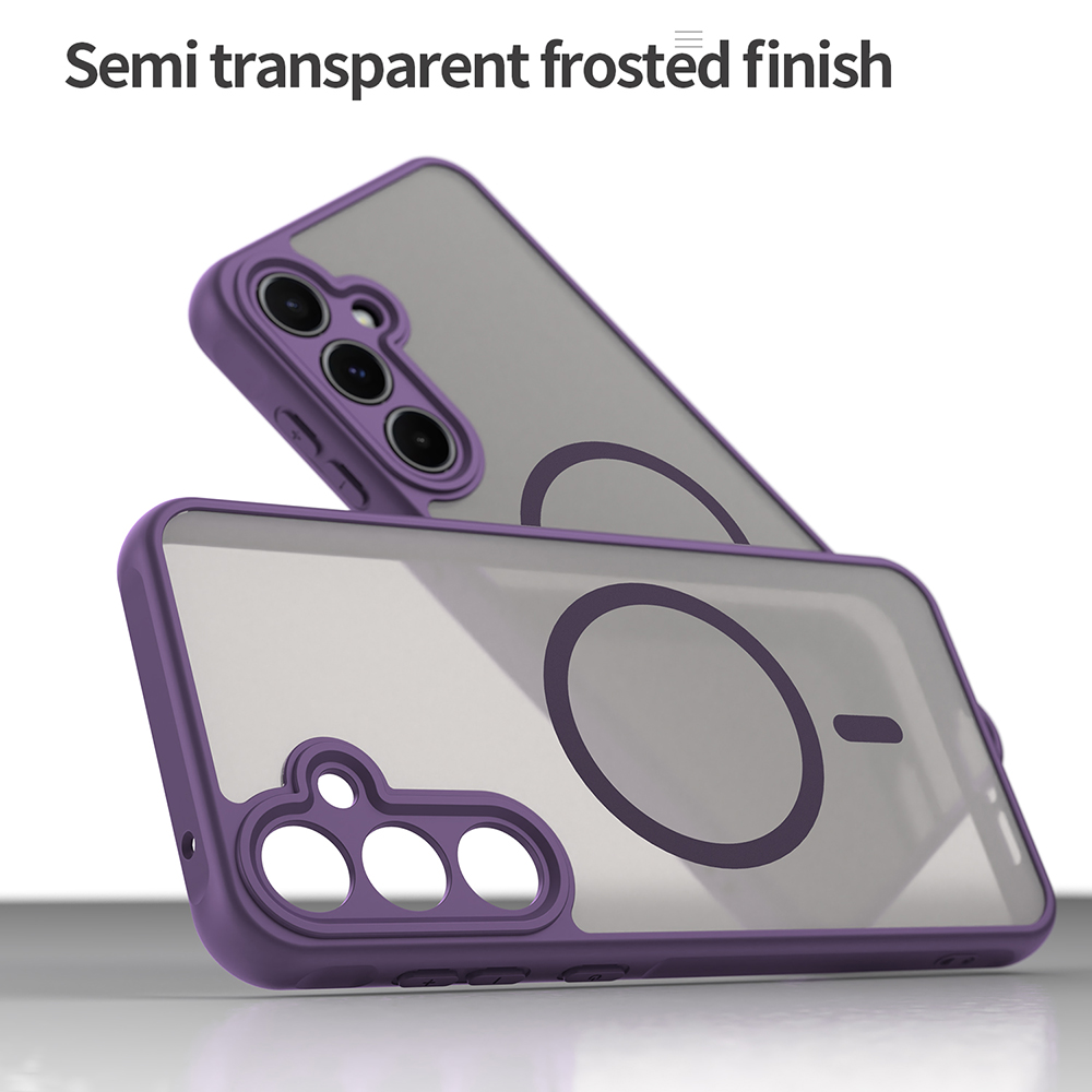 Techsuit HaloFrost II MagSafe pro Samsung Galaxy A55 5G fialováPředstavujeme ochranné pouzdro Techsuit HaloFrost II MagSafe, které je navrženo pro Samsung Galaxy A55 5G a kombinuje elegantní design s maximální funkčností. Toto pouzdro v atraktivní fialové barvě nabízí průhlednou zadní stranu s matným povrchem, která nechá vyniknout originální design vašeho telefonu, zatímco fialový rámeček dodává pouzdru moderní a sofistikovaný vzhled. Integrovaný kruhový magnetický prstenec MagSafe zajišťuje perfektní kompatibilitu s MagSafe příslušenstvím a bezdrátovým nabíjením. Přesné výřezy pro fotoaparáty jsou zvýrazněny fialovým lemováním, což podtrhuje celkový estetický dojem a zároveň poskytuje zvýšenou ochranu objektivů. Tlačítka na boku jsou rovněž fialová a dokonale ladí s rámečkem pouzdra, což zaručuje pohodlné ovládání a jistý stisk.