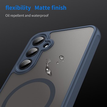 Kryt Techsuit HaloFrost II MagSafe se pyšní elegantním a funkčním designem. Jeho tmavě modrý rám dokonale doplňuje průsvitná matná zadní strana, která nechává vyniknout originální design vašeho telefonu a zároveň je odolná proti otiskům prstů a mastnotě. Integrovaný MagSafe kroužek na zadní straně zajišťuje bezproblémovou kompatibilitu s MagSafe příslušenstvím, což rozšiřuje možnosti používání vašeho zařízení.