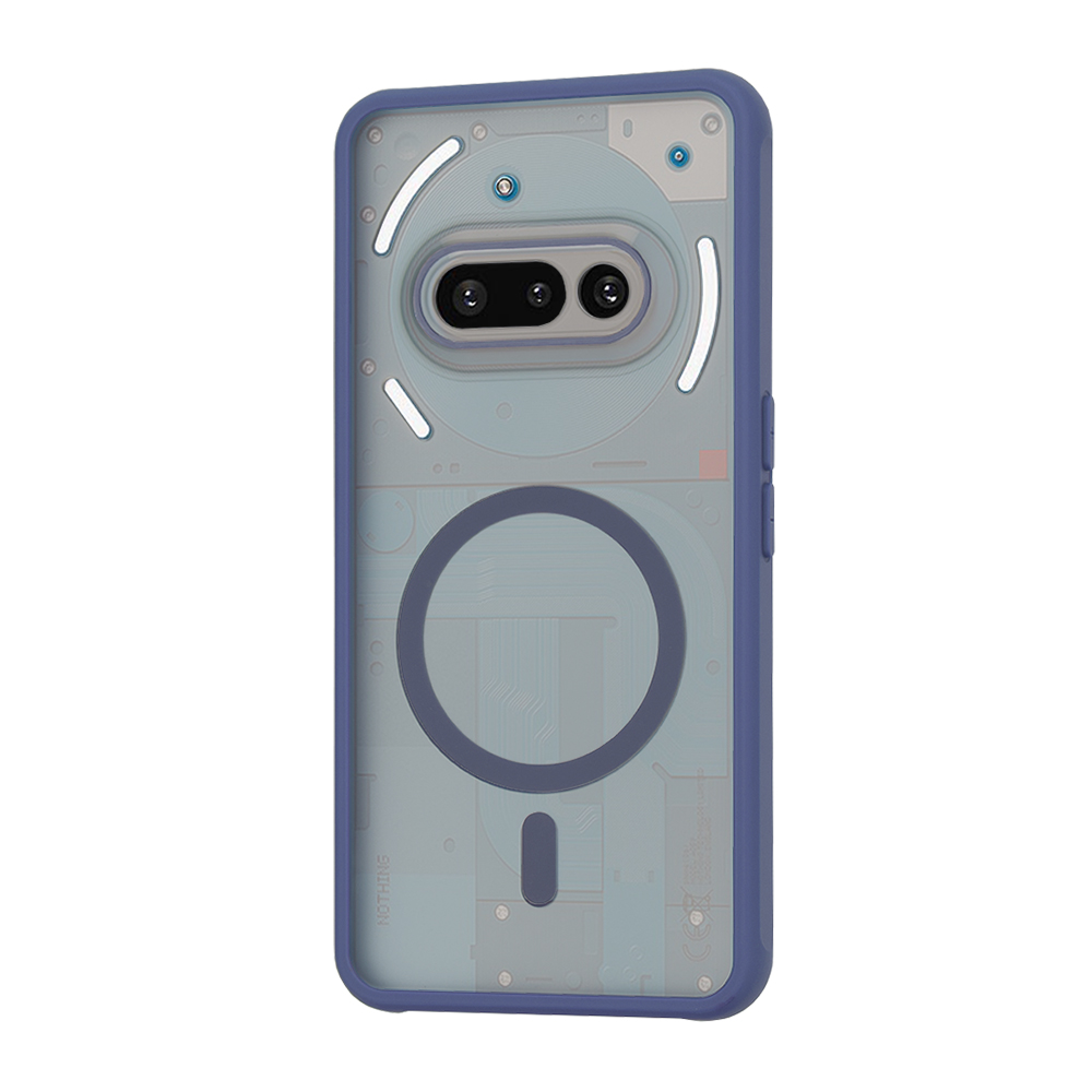 Design krytu HaloFrost MagSafe Series se vyznačuje průhlednou zadní stranou, která nechává vyniknout originální estetiku vašeho Nothing Phone (3a), včetně jeho ikonického rozhraní Glyph. Okraje krytu jsou provedeny v elegantní tmavě modré barvě, která dodává telefonu sofistikovaný vzhled. Integrovaný MagSafe kroužek, rovněž v tmavě modrém odstínu, zajišťuje bezproblémovou kompatibilitu s MagSafe příslušenstvím a zároveň je stylovým designovým prvkem. Kryt je tenký a lehký, s přesnými výřezy pro fotoaparáty a všechny porty, což zaručuje plnou funkčnost bez kompromisů.