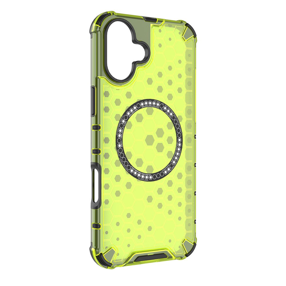 Pouzdro Techsuit HoneyComb Shield MagSafe se pyšní výrazným designem inspirovaným včelí pláství, který pokrývá celou zadní stranu a dodává mu jedinečný vzhled a lepší úchop. Limetkově zelená barva je doplněna černými akcenty na zesílených rozích a okrajích, což podtrhuje jeho odolnou konstrukci. Zesílené rohy jsou navrženy tak, aby absorbovaly nárazy a chránily telefon před poškozením při pádech. Integrovaný MagSafe kroužek na zadní straně zajišťuje plnou kompatibilitu s MagSafe příslušenstvím, což umožňuje snadné a bezpečné bezdrátové nabíjení a připojení dalších doplňků. Přesné výřezy pro fotoaparáty, konektory a reproduktory zaručují, že všechny funkce vašeho telefonu zůstanou plně dostupné a tlačítka si zachovají jistý a příjemný stisk.