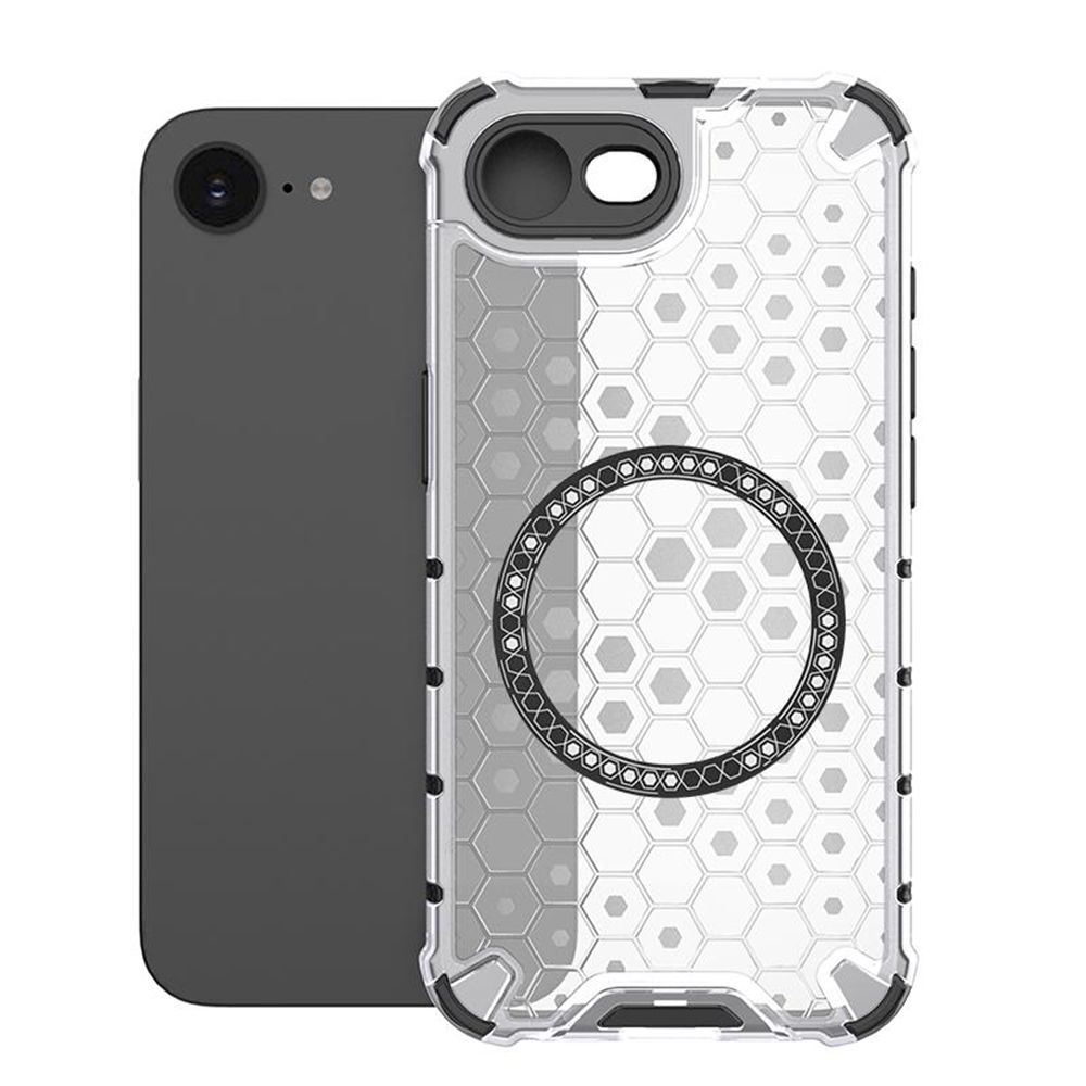 Pouzdro Techsuit HoneyComb Shield MagSafe se pyšní moderním a funkčním designem. Zadní strana je zdobena výrazným voštinovým (honeycomb) vzorem, který dodává pouzdru dynamický vzhled a zároveň zlepšuje úchop. Uprostřed zadní strany je elegantně integrován kroužek MagSafe, který zajišťuje perfektní kompatibilitu s veškerým MagSafe příslušenstvím a bezdrátovým nabíjením. Rohy pouzdra jsou zesílené a robustní, navržené tak, aby absorbovaly nárazy a chránily telefon před poškozením při pádech. Boky pouzdra jsou průhledné, což umožňuje vyniknout původnímu designu vašeho iPhone 16e, zatímco černé akcenty na rozích a kolem fotoaparátu dodávají pouzdru sportovní a odolný vzhled. Přesné výřezy pro konektory, mikrofony, reproduktory a fotoaparáty zaručují, že funkčnost vašeho telefonu nebude nikdy omezena, a tlačítka mají jistý stisk pro pohodlné ovládání.