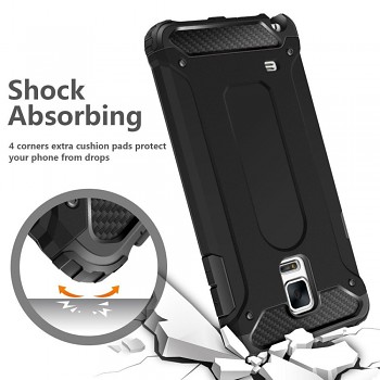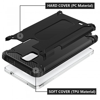 Toto hybridní pouzdro je navrženo s důrazem na maximální ochranu a moderní vzhled. Skládá se ze dvou vrstev: vnitřní část tvoří pružný a nárazy absorbující TPU materiál (měkký kryt), zatímco vnější vrstva je vyrobena z pevného PC materiálu (tvrdý kryt). Tato kombinace zajišťuje efektivní tlumení nárazů a ochranu proti pádům, poškrábání a každodennímu opotřebení. Design pouzdra je robustní a funkční, s vyztuženými rohy, které poskytují extra polstrování a chrání telefon před poškozením při pádech. Černá barva dodává pouzdru sofistikovaný a nadčasový vzhled, doplněný o texturované prvky, které připomínají karbonová vlákna, což zvyšuje estetickou hodnotu a zároveň zlepšuje úchop. Zvýšené okraje kolem displeje (0,8 mm) navíc chrání obrazovku před přímým kontaktem s povrchem.