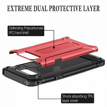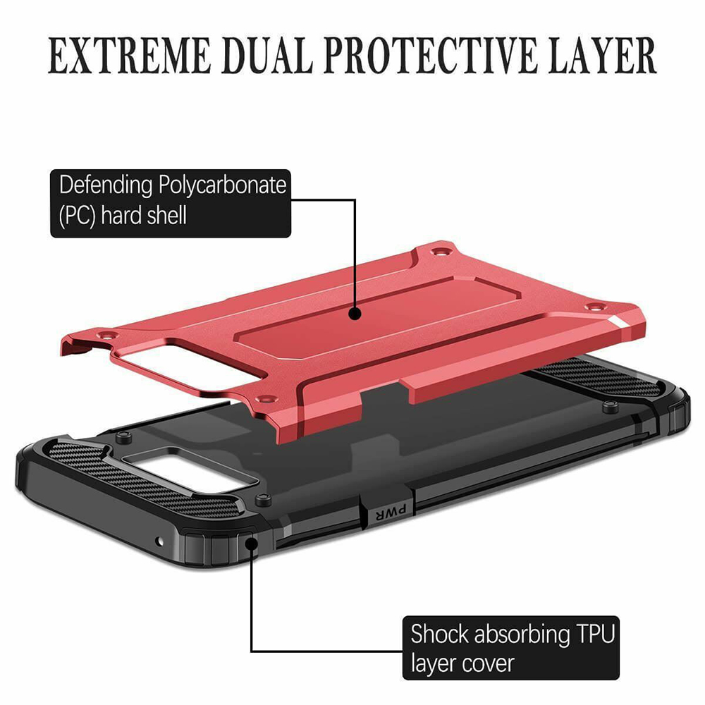 Pouzdro Techsuit Hybrid Armor se pyšní robustním a moderním designem, který okamžitě upoutá pozornost. Jeho konstrukce je založena na dvojité ochranné vrstvě: vnitřní část tvoří flexibilní, nárazy absorbující TPU materiál, který efektivně tlumí otřesy a pády. Vnější vrstva je vyrobena z pevného polykarbonátu (PC), který dodává pouzdru extrémní odolnost proti poškrábání a nárazům. Kombinace těchto materiálů zajišťuje maximální ochranu pro vaše zařízení. Design je doplněn o zvýšené okraje, které chrání displej a fotoaparát před přímým kontaktem s povrchem, a o taktilní kryty tlačítek, které zachovávají jejich citlivost a jistý stisk. Zadní strana pouzdra má výrazné linie a texturu, která zlepšuje úchop a dodává pouzdru dynamický vzhled.