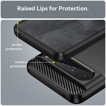 Pouzdro se pyšní sofistikovaným designem, který podtrhuje estetiku vašeho zařízení. Horní a spodní část pouzdra zdobí textura imitující karbonová vlákna, která dodává pouzdru sportovní a dynamický vzhled. Střední část je opatřena jemnou texturou broušeného kovu, což vytváří elegantní kontrast a příjemný pocit na dotek. Celé pouzdro je vyrobeno z kvalitního silikonu, který zajišťuje flexibilitu a odolnost proti nárazům a poškrábání. Černá barva dodává pouzdru univerzální a nadčasový charakter.