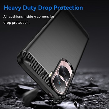 Kryt se pyšní moderním a sofistikovaným designem. Zadní strana je opatřena elegantní texturou imitující broušený kov, která dodává telefonu luxusní vzhled a zároveň zlepšuje úchop. Horní a spodní část, stejně jako precizní výřez kolem modulu fotoaparátu, jsou zdobeny dynamickým vzorem karbonových vláken, což podtrhuje sportovní a technologický charakter krytu. Vyrobeno z kvalitního silikonu, který je příjemný na dotek a zároveň poskytuje vynikající absorpci nárazů.