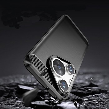 Pouzdro se pyšní sofistikovaným vzhledem v černé barvě. Zadní strana je opatřena elegantní texturou imitující broušený kov, která dodává pouzdru prémiový vzhled a zároveň zlepšuje úchop. Horní a spodní část zadní strany, stejně jako precizní výřez kolem modulu fotoaparátu, jsou zvýrazněny dynamickým vzorováním karbonových vláken. Tento design nejenže vypadá skvěle, ale také přispívá k celkové odolnosti. Materiál karbon silikon zajišťuje flexibilitu pro snadnou instalaci a zároveň robustní ochranu proti nárazům a poškrábání. Zvýšené okraje kolem fotoaparátu a displeje poskytují dodatečnou ochranu proti poškození při položení telefonu na rovný povrch.