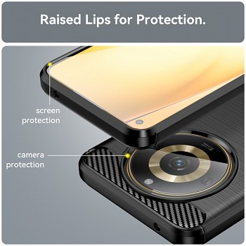 Pouzdro Techsuit Karbon Silikon se pyšní moderním a sofistikovaným vzhledem. Zadní strana je opatřena jemnou texturou imitující broušený kov, která dodává pouzdru prémiový vzhled a zároveň zlepšuje úchop, čímž minimalizuje riziko vyklouznutí telefonu z ruky. Horní a spodní část zadní strany, stejně jako okraje kolem výrazného kruhového modulu fotoaparátu, jsou zdobeny dynamickým vzorem karbonových vláken, který podtrhuje sportovní eleganci a odolnost pouzdra. Černá barva je univerzální a nadčasová, dokonale doplňující design vašeho zařízení. Vyrobeno z kvalitního silikonu, pouzdro efektivně absorbuje nárazy a chrání telefon před poškrábáním a každodenním opotřebením.