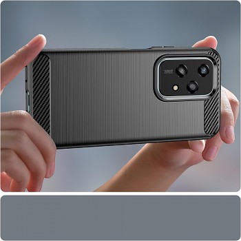 Toto pouzdro se pyšní moderním a sofistikovaným designem. Zadní strana je opatřena jemnou texturou imitující broušený kov, která dodává pouzdru prémiový vzhled a zároveň zlepšuje úchop. Horní a spodní okraje, stejně jako oblast kolem fotoaparátu, jsou zvýrazněny dynamickou texturou karbonových vláken, což nejenže přidává na estetice, ale také posiluje odolnost v kritických bodech. Vyrobeno z kvalitního silikonu, pouzdro je příjemné na dotek a zároveň dostatečně pevné, aby absorbovalo nárazy a chránilo před poškrábáním. Zvýšené okraje kolem displeje a fotoaparátu zajišťují extra ochranu proti přímému kontaktu s rovnými plochami.