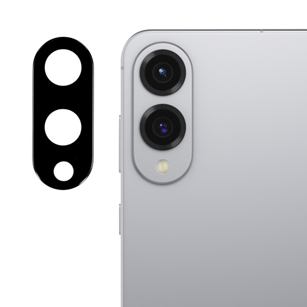 Toto kompletní sklo fotoaparátu je navrženo v elegantní černé barvě a má podlouhlý, oválný tvar, který přesně kopíruje modul zadního fotoaparátu telefonu Samsung Galaxy S25 Edge. Obsahuje tři precizně vyřezané kruhové otvory – dva větší pro hlavní objektivy a jeden menší pro blesk, což zajišťuje bezproblémové fungování všech funkcí fotoaparátu. Jeho minimalistický design dokonale splyne s estetikou vašeho telefonu a zároveň poskytne robustní ochranu.