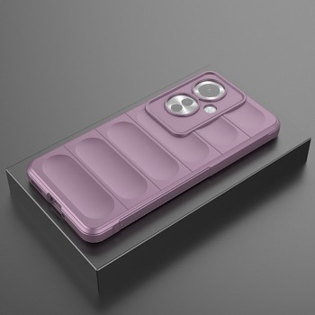 Pouzdro se pyšní moderním a funkčním designem v atraktivní fialové barvě. Zadní strana je opatřena horizontálními vystouplými panely, které nejenže dodávají pouzdru jedinečný vzhled, ale také zvyšují jeho odolnost proti nárazům a pádům. Oblast kolem fotoaparátu je chráněna zvýšeným rámečkem, který efektivně brání poškrábání a poškození objektivů. Pouzdro je vyrobeno z flexibilního materiálu, pravděpodobně TPU, který zajišťuje snadnou instalaci a pevné uchycení telefonu. Vnitřní strana pouzdra je navržena s ohledem na rozptyl nárazů, což podtrhuje jeho ochranné vlastnosti.
