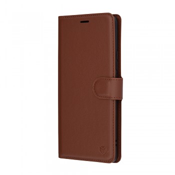 Pouzdro je vyrobeno z kvalitní imitace kůže s jemnou texturou, která je příjemná na dotek a dodává mu luxusní vzhled. Hnědý odstín je nadčasový a snadno se kombinuje. Folio design zajišťuje komplexní ochranu vašeho telefonu ze všech stran, včetně displeje. Uzavírání je řešeno pomocí praktické boční přezky s magnetickým mechanismem, která drží pouzdro pevně zavřené a zabraňuje nechtěnému otevření.