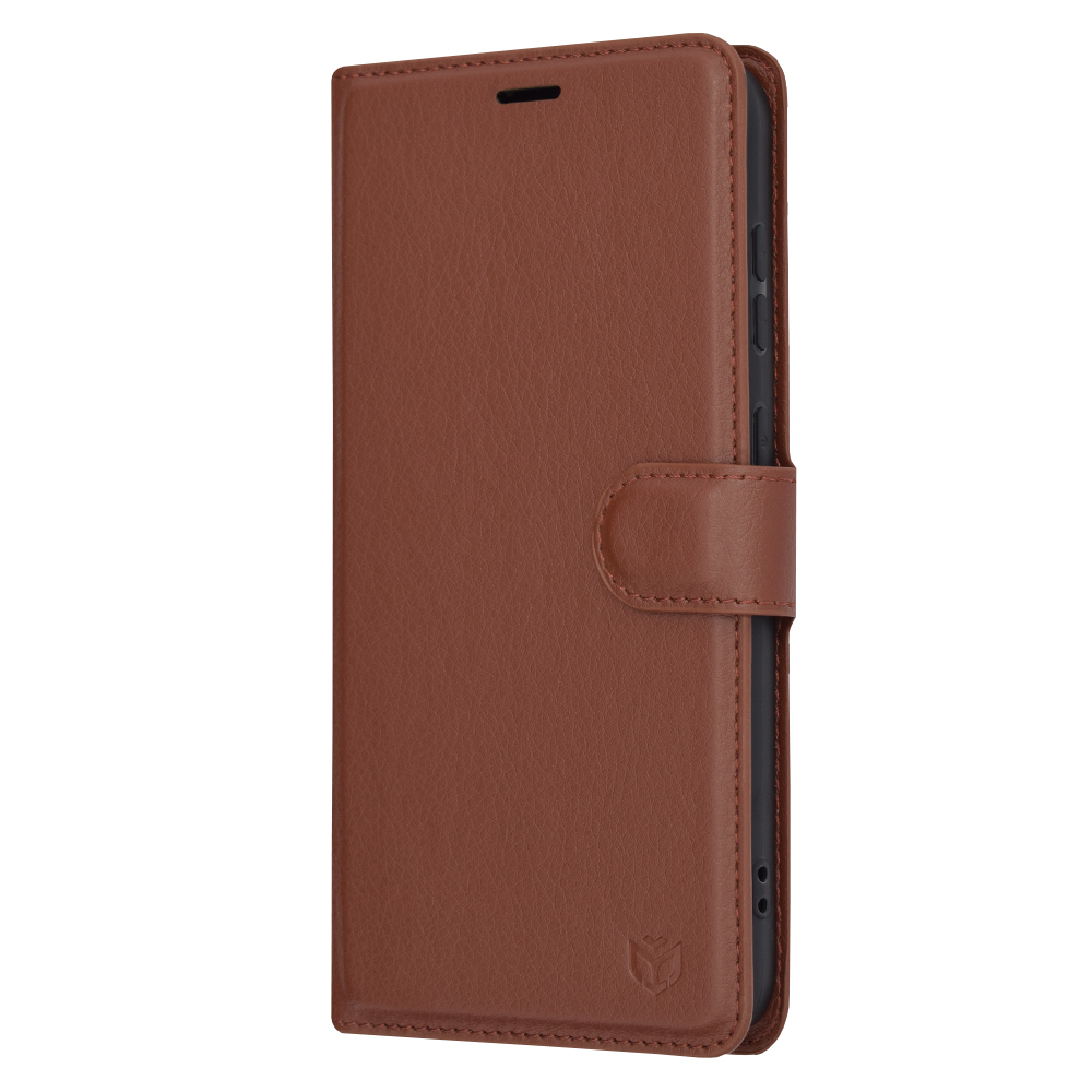 Pouzdro Techsuit Leather Folio se pyšní nadčasovým designem, který kombinuje funkčnost s estetikou. Jeho povrch imituje jemnou kůži v bohatém hnědém odstínu, což dodává vašemu telefonu punc luxusu. Folio styl zajišťuje komplexní ochranu celého zařízení, včetně displeje, který je chráněn přední odklápěcí částí. Precizní zpracování je patrné na každém detailu, od dokonalých výřezů pro fotoaparát, konektory a reproduktory, až po integrovaný magnetický uzávěr, který bezpečně drží pouzdro zavřené. Na přední straně je decentně umístěno logo značky Techsuit, které podtrhuje originalitu produktu.