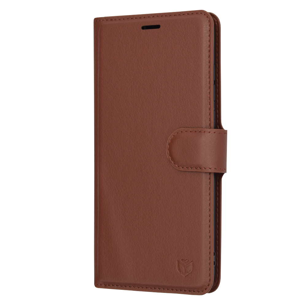 Pouzdro Techsuit se pyšní klasickým folio designem, který kompletně obepíná váš telefon a chrání jej ze všech stran. Je vyrobeno z kvalitního materiálu imitujícího kůži s jemnou texturou, která je příjemná na dotek a dodává pouzdru luxusní vzhled. Hnědá barva je nadčasová a snadno se kombinuje s jakýmkoli stylem. Praktické magnetické zapínání zajišťuje, že pouzdro zůstane bezpečně zavřené a chrání displej před poškrábáním a nečistotami. Uvnitř pouzdra naleznete integrované sloty pro platební karty a větší kapsu na bankovky, což z něj činí praktickou peněženku pro každodenní nošení. Díky promyšlené konstrukci lze pouzdro snadno složit do praktického stojánku, ideálního pro sledování videí nebo videohovory. Všechny výřezy pro konektory, mikrofony, reproduktory a fotoaparáty jsou precizně zpracované, což zaručuje plnou funkčnost telefonu bez nutnosti vyjímání z pouzdra. Tlačítka si zachovávají jistý stisk a přístup k nabíjecímu portu je vždy bezproblémový.