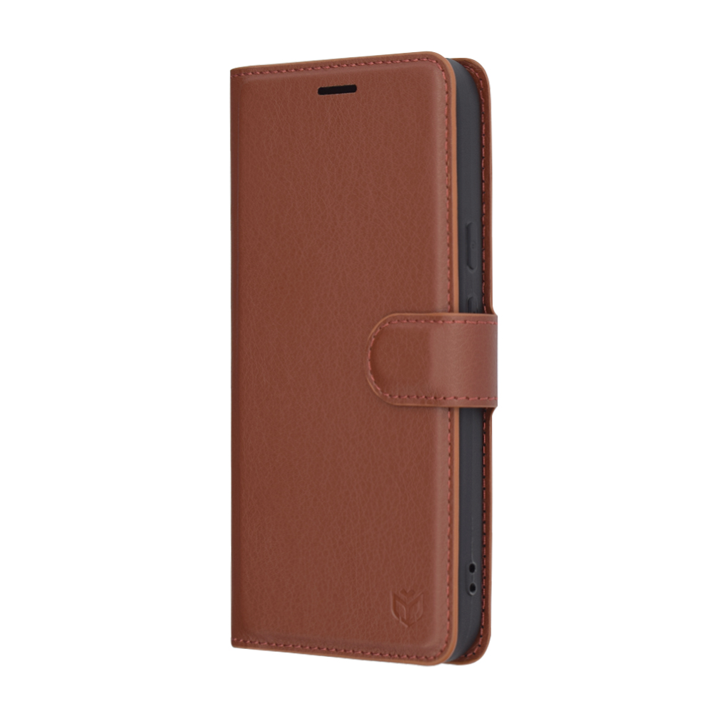 Pouzdro se vyznačuje klasickým folio designem, který chrání telefon ze všech stran. Vnější strana je vyrobena z kvalitní imitace kůže s jemnou texturou, která je příjemná na dotek a dodává pouzdru luxusní vzhled. Hnědá barva je univerzální a nadčasová, snadno se kombinuje s jakýmkoli stylem. Pouzdro je vybaveno praktickým magnetickým zapínáním, které zajišťuje bezpečné uzavření a chrání displej před poškrábáním. Přesné výřezy pro fotoaparát, konektory, mikrofony a reproduktory zaručují plnou funkčnost telefonu bez nutnosti vyjímání z pouzdra. Tlačítka jsou snadno přístupná a mají jistý stisk. Vnitřní strana pouzdra pravděpodobně nabízí sloty pro karty, což zvyšuje jeho praktičnost a umožňuje nosit nejdůležitější doklady vždy u sebe.