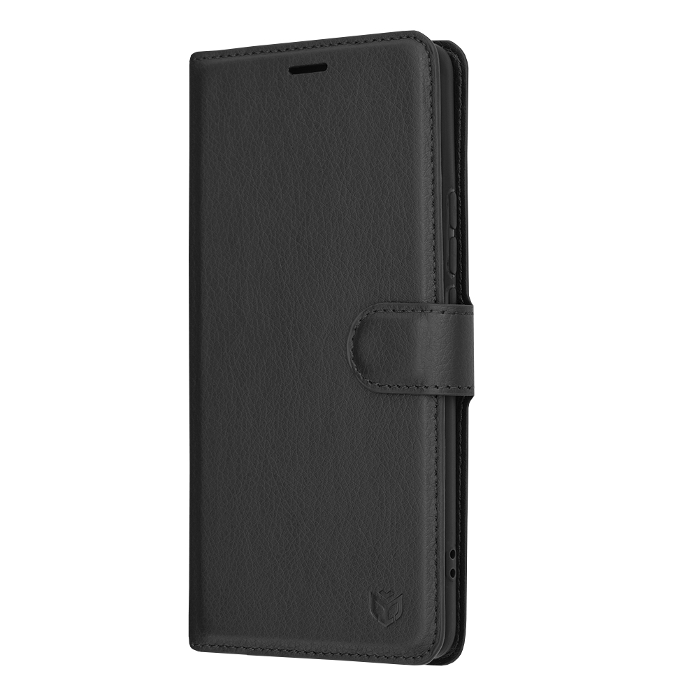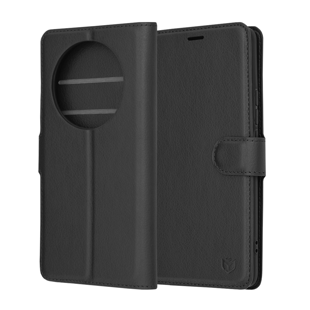 Toto folio pouzdro v černé barvě je vyrobeno z kvalitní umělé kůže s jemnou texturou, která dodává pouzdru luxusní vzhled a příjemný pocit na dotek. Design je promyšlený do posledního detailu, aby poskytoval komplexní ochranu pro váš telefon. Pouzdro se uzavírá pomocí magnetické přezky, která zajišťuje bezpečné držení a zabraňuje náhodnému otevření. Vnitřní strana pouzdra nabízí praktické přihrádky na kreditní karty a bankovky, což z něj činí ideálního společníka pro každodenní nošení. Díky své konstrukci lze pouzdro snadno složit do praktického stojánku, který je ideální pro sledování videí nebo videohovory. Na zadní straně pouzdra je precizní výřez pro velký kruhový modul fotoaparátu telefonu Realme 12 Pro+, který zajišťuje jeho plnou funkčnost a ochranu.