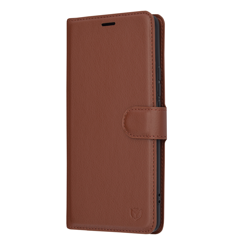 Pouzdro Techsuit se pyšní klasickým folio designem, který chrání telefon ze všech stran. Je vyrobeno z kvalitní umělé kůže s jemnou texturou, která je příjemná na dotek a dodává pouzdru prémiový vzhled. Hnědá barva je univerzální a elegantní, snadno se kombinuje s jakýmkoli styleem. Na zadní straně pouzdra naleznete precizní kruhový výřez, který je dokonale přizpůsoben pro rozměrný modul fotoaparátu telefonů Realme 12 Pro a 12 Pro+, což zajišťuje jeho plnou funkčnost bez omezení.