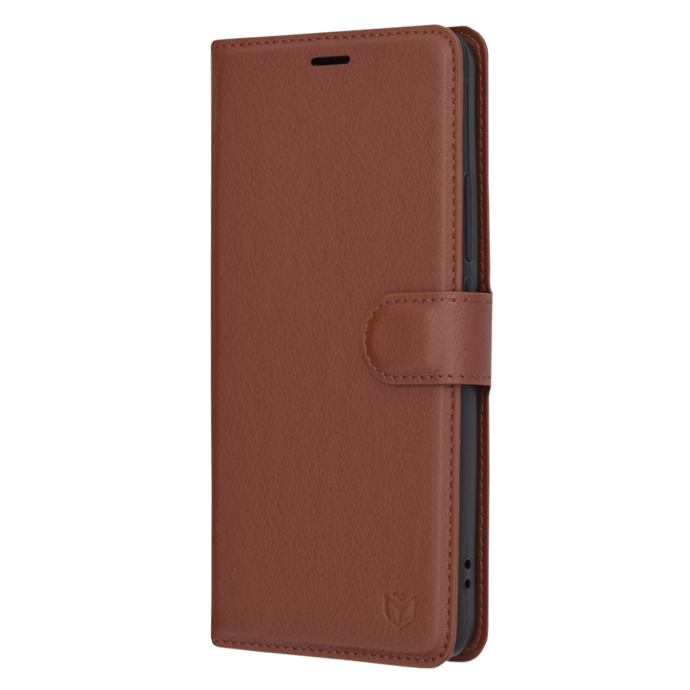 Pouzdro je vyrobeno z kvalitní umělé kůže s jemnou texturou, která je příjemná na dotek a dodává mu luxusní vzhled. Hluboký hnědý odstín podtrhuje jeho eleganci a nadčasovost. Díky svému provedení chrání telefon ze všech stran – zadní část, boky i displej jsou v bezpečí před poškrábáním, nárazy a nečistotami.