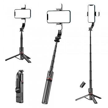 Techsuit L12D Selfie tyč stativ Bluetooth 2x LED 108cm ČernáPředstavujeme Techsuit L12D Selfie tyč stativ Bluetooth 2x LED 108cm Černá – dokonalého společníka pro všechny vaše fotografické a video potřeby. Tento inovativní produkt kombinuje funkce selfie tyče a stabilního stativu, což vám umožní zachytit perfektní záběry kdekoli a kdykoli.