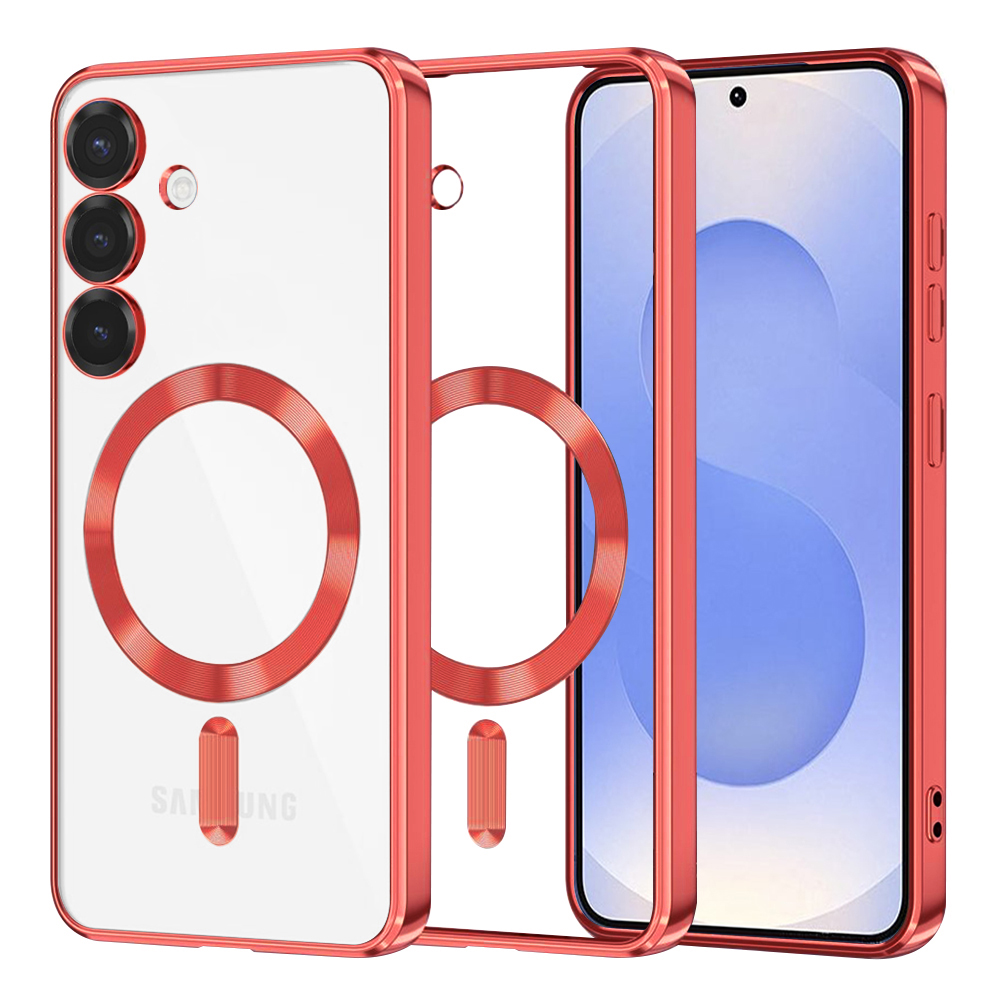 Kryt Techsuit Luxury Crystal MagSafe se pyšní průhledným zadním panelem, který nechává vyniknout originální krásu vašeho telefonu Samsung Galaxy S25. Okraje a výrazný kruhový prvek MagSafe na zadní straně jsou provedeny v atraktivní červené metalické barvě, která dodává pouzdru luxusní a dynamický vzhled. Precizní zpracování zajišťuje dokonalé výřezy pro fotoaparáty, konektory a reproduktory, zatímco tlačítka jsou chráněna a zároveň si zachovávají jistý a příjemný stisk. Díky integrovanému MagSafe kroužku je zajištěna bezproblémová kompatibilita s MagSafe příslušenstvím, což rozšiřuje možnosti nabíjení a uchycení.