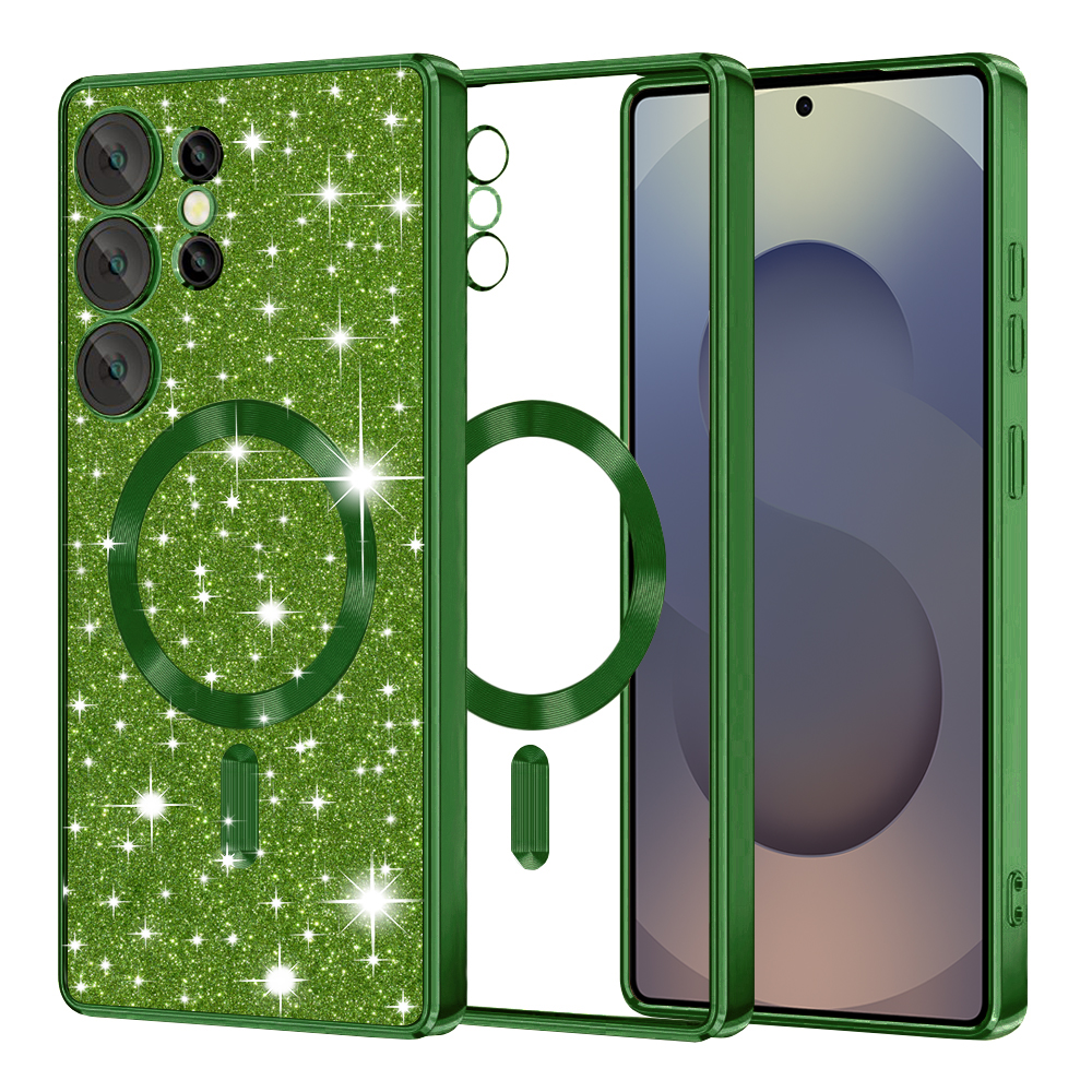 Techsuit Luxury Glitter MagSafe pro Samsung Galaxy S25 Ultra tmavě zelenáDopřejte svému Samsungu Galaxy S25 Ultra luxusní ochranu a oslnivý vzhled s pouzdrem Techsuit Luxury Glitter MagSafe v elegantní tmavě zelené barvě. Tento kryt je navržen tak, aby dokonale spojil prvotřídní bezpečnost s moderním designem a praktickou funkcionalitou MagSafe.