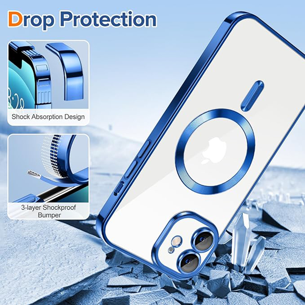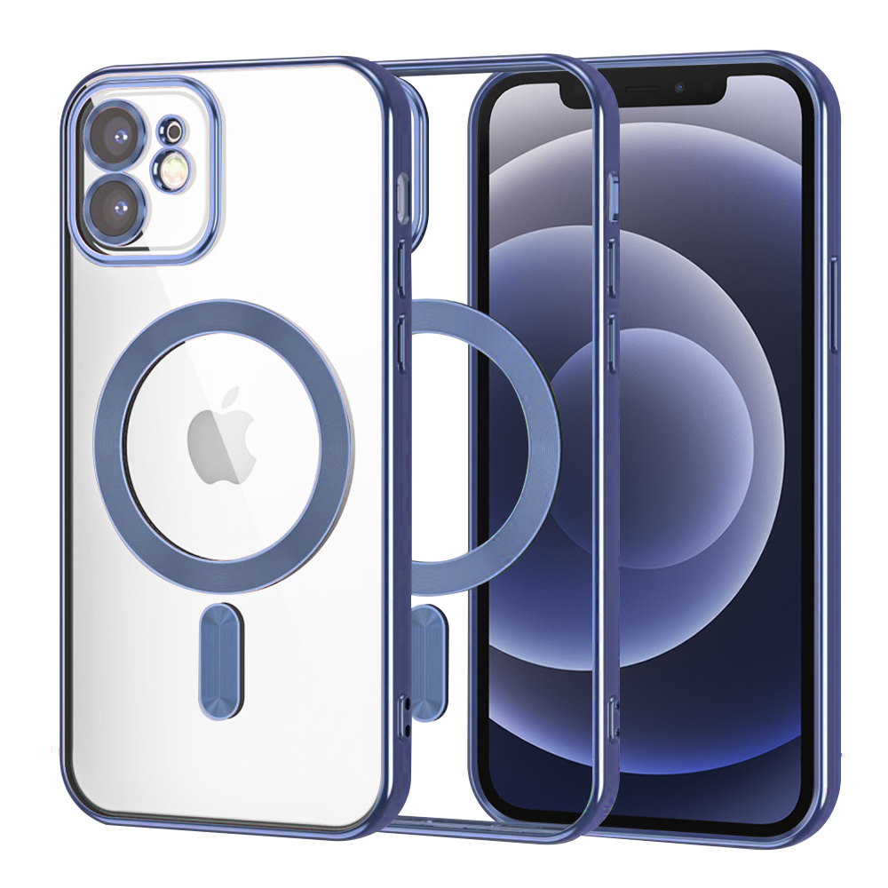 Pouzdro se pyšní křišťálově čistým průhledným tělem, které nechává vyniknout originální design vašeho iPhone 12 a ikonické logo Apple. Okraje pouzdra jsou provedeny v hlubokém tmavě modrém odstínu, který dodává celku sofistikovaný a luxusní vzhled. Integrovaný MagSafe kroužek a zarovnávací magnet na zadní straně, rovněž v tmavě modré barvě, zajišťují bezproblémovou kompatibilitu s MagSafe příslušenstvím a rychlé bezdrátové nabíjení. Přesné výřezy pro fotoaparáty jsou zvýrazněny modrými akcenty, což podtrhuje celkovou eleganci. Tlačítka jsou rovněž v tmavě modré barvě, dokonale ladí s rámem a zajišťují jistý a příjemný stisk.