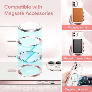 Kryt se pyšní křišťálově čistým transparentním provedením, které nechá vyniknout původní barvu a design vašeho iPhone 12. Elegantní růžové/rose gold metalické akcenty lemují okraje krytu, modul fotoaparátu a výrazný MagSafe kroužek na zadní straně, dodávající mu luxusní vzhled. Díky integrovanému MagSafe kroužku je zajištěna plná kompatibilita s MagSafe příslušenstvím, což umožňuje snadné a rychlé bezdrátové nabíjení a připojení dalších doplňků.