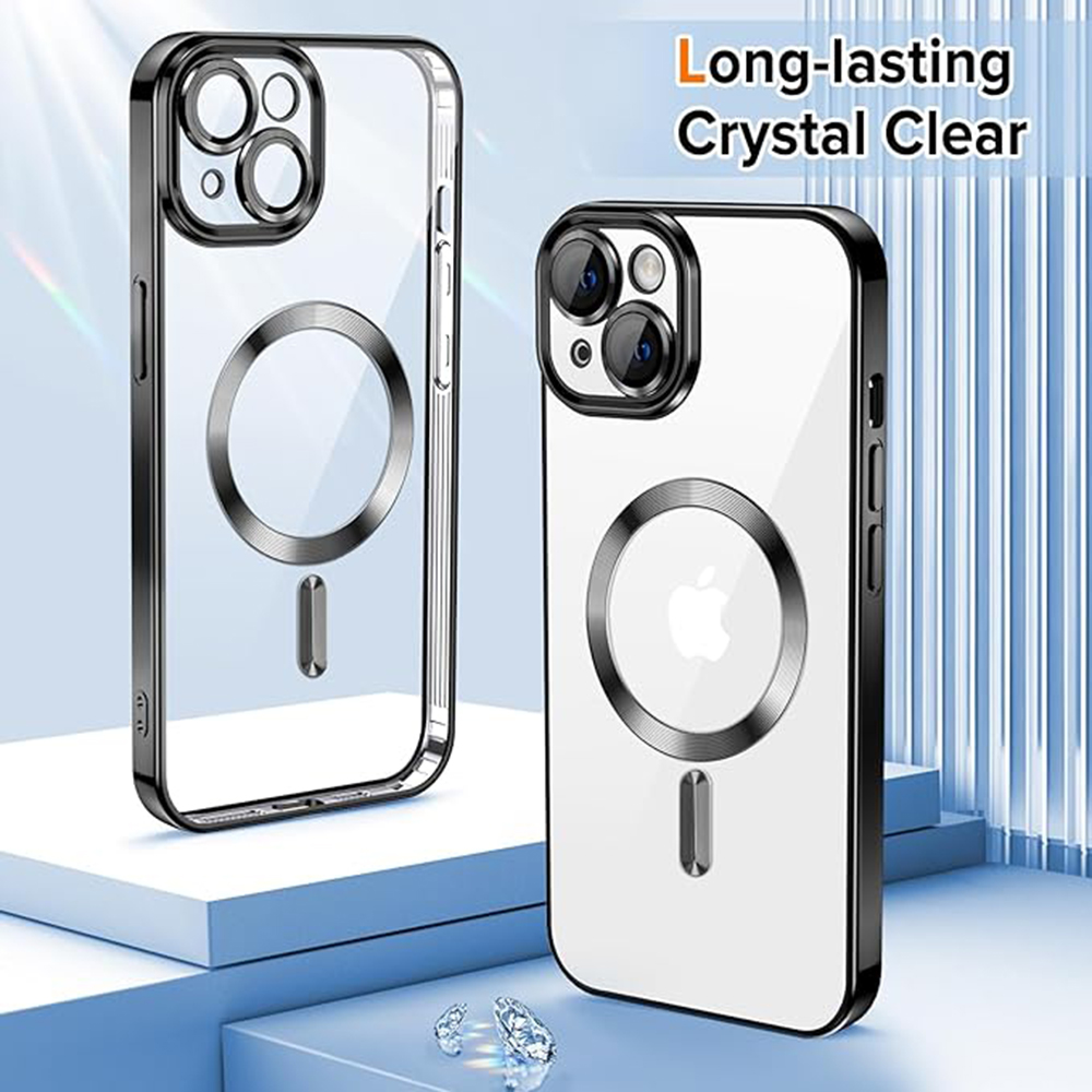 Kryt Techsuit Luxusní Křišťálový MagSafe se pyšní transparentním provedením, které nechává vyniknout ikonický design vašeho iPhone 13. Okraje krytu jsou v elegantní černé barvě, což dodává celkovému vzhledu sofistikovaný nádech. Integrovaný MagSafe kroužek v tmavém odstínu zajišťuje bezproblémovou kompatibilitu s MagSafe příslušenstvím a zároveň slouží jako stylový designový prvek. Kryt je vyroben z kvalitních a zdravotně nezávadných materiálů, které zaručují dlouhou životnost a odolnost proti každodennímu opotřebení. Díky přesnému zpracování jsou všechny výřezy pro konektory, mikrofony, reproduktory a fotoaparáty dokonale zarovnány, což zajišťuje plnou funkčnost telefonu bez jakéhokoli omezení. Tlačítka mají jistý stisk a přístup k nabíjecímu portu je vždy bezproblémový.