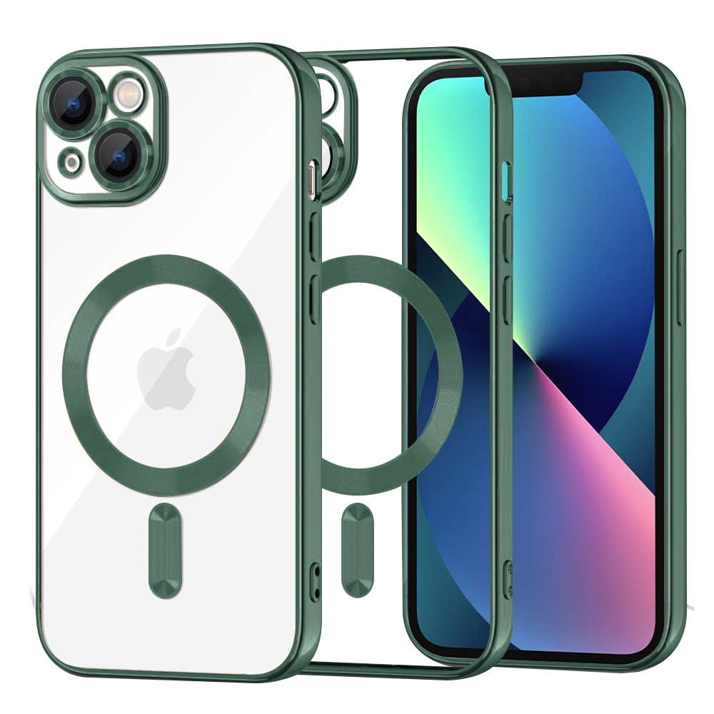Kryt se pyšní křišťálově čistou zadní stranou, která nechá vyniknout krásu vašeho telefonu, zatímco tmavě zelený rámeček dodává sofistikovaný a moderní vzhled. Integrovaný MagSafe kroužek v identické tmavě zelené barvě zajišťuje plnou kompatibilitu se všemi MagSafe příslušenstvím, od bezdrátových nabíječek po peněženky a držáky.