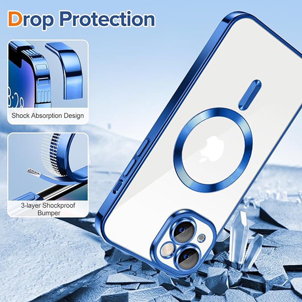 Kryt se pyšní křišťálově čistou zadní stranou, která nechá vyniknout originální design vašeho iPhone 14. Okraje a precizní výřezy kolem modulu fotoaparátu jsou provedeny v hlubokém tmavě modrém odstínu, což dodává telefonu sofistikovaný vzhled. Integrovaný MagSafe kroužek, rovněž v tmavě modré barvě, zajišťuje plnou kompatibilitu se všemi MagSafe příslušenstvím, od bezdrátových nabíječek po magnetické peněženky a držáky.
