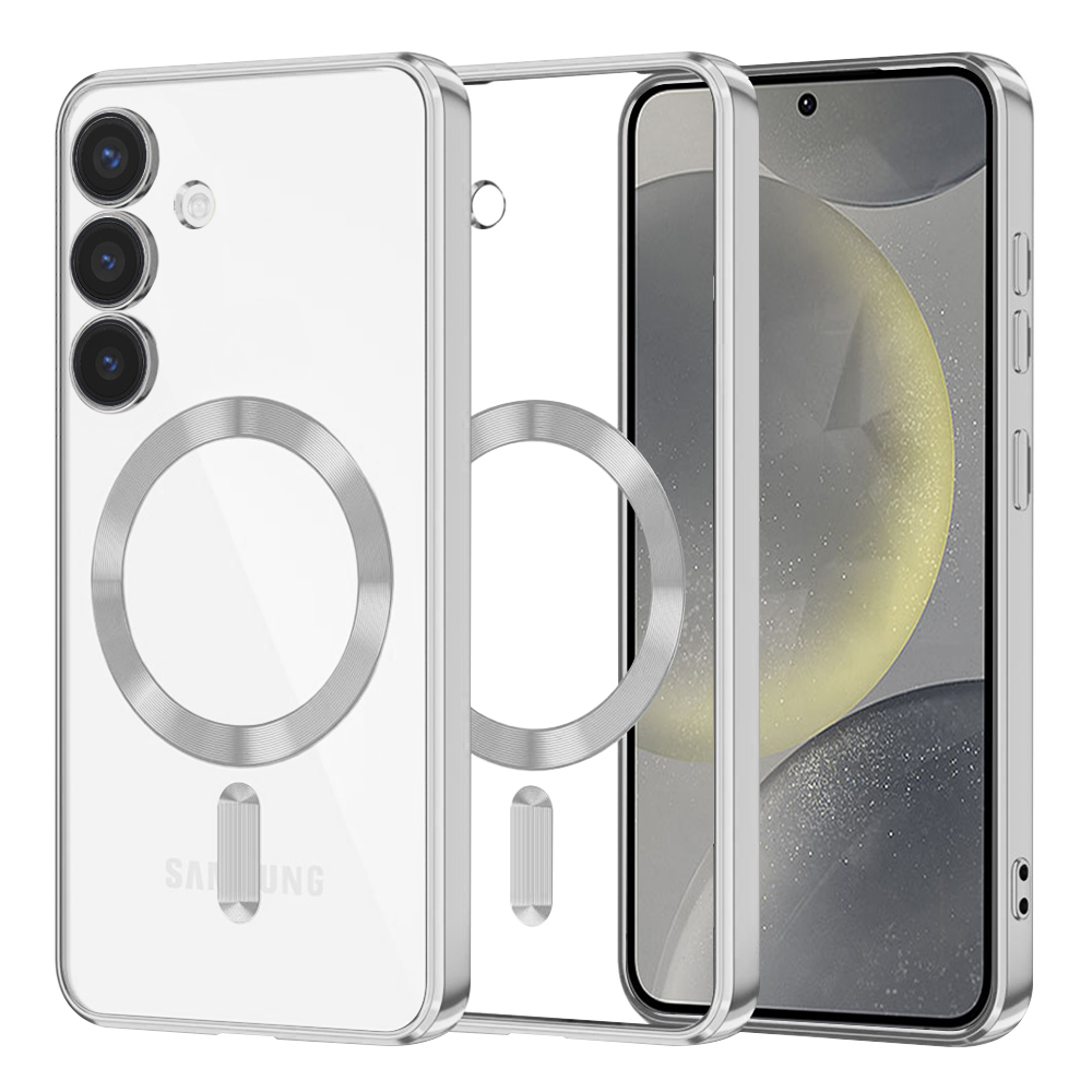 Techsuit Luxusní Křišťálový MagSafe Samsung Galaxy S24 StříbrnýDopřejte svému Samsungu Galaxy S24 prvotřídní ochranu a elegantní vzhled s luxusním křišťálovým pouzdrem Techsuit. Tento obal kombinuje sofistikovaný design s pokročilou funkčností MagSafe, čímž zajišťuje nejen bezpečí, ale i maximální pohodlí při každodenním používání.