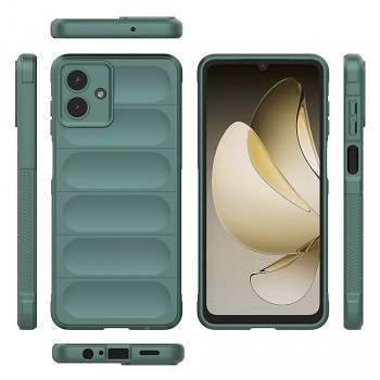 Kryt Techsuit Magic Shield v atraktivní zelené barvě se pyšní promyšleným designem, který nejen chrání, ale i skvěle vypadá. Zadní strana je opatřena horizontálními vystouplými drážkami, které dodávají krytu moderní vzhled a zároveň zlepšují úchop, čímž minimalizují riziko vyklouznutí telefonu z ruky. Kolem modulu fotoaparátu je integrován zvýšený okraj, který efektivně chrání čočky před poškrábáním při položení telefonu na rovný povrch. Boční strany krytu jsou navrženy s jemnou texturou pro ještě jistější držení. Vyroben z pečlivě vybraných a zdravotně nezávadných materiálů, tento kryt je flexibilní, ale zároveň dostatečně robustní, aby absorboval nárazy a chránil váš telefon. Vnitřní strana krytu je navíc opatřena logem "DROP PROTECTION", což podtrhuje jeho odolnost proti pádům.