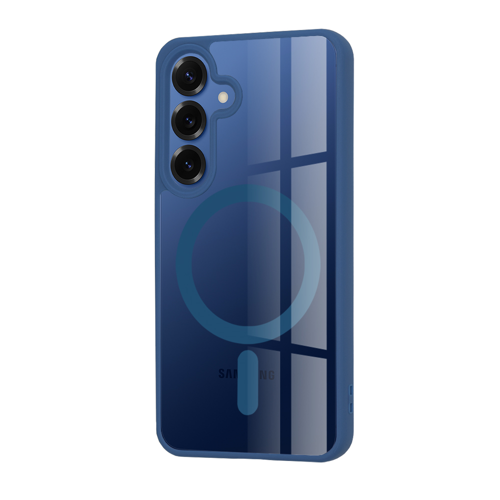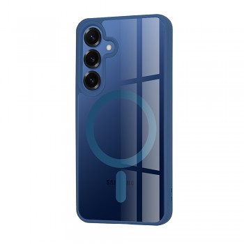Pouzdro Techsuit MagSafe Pro pro Samsung Galaxy S25 v modré barvě se vyznačuje hybridní konstrukcí, která kombinuje pevný průhledný zadní panel s flexibilními modrými okraji. Zadní strana pouzdra je křišťálově čistá, což umožňuje vyniknout originálnímu designu vašeho telefonu Samsung Galaxy S25. Integrovaný MagSafe kroužek v modré barvě je elegantně zapracován do zadní části a zajišťuje silné magnetické spojení s MagSafe příslušenstvím, jako jsou nabíječky nebo peněženky.