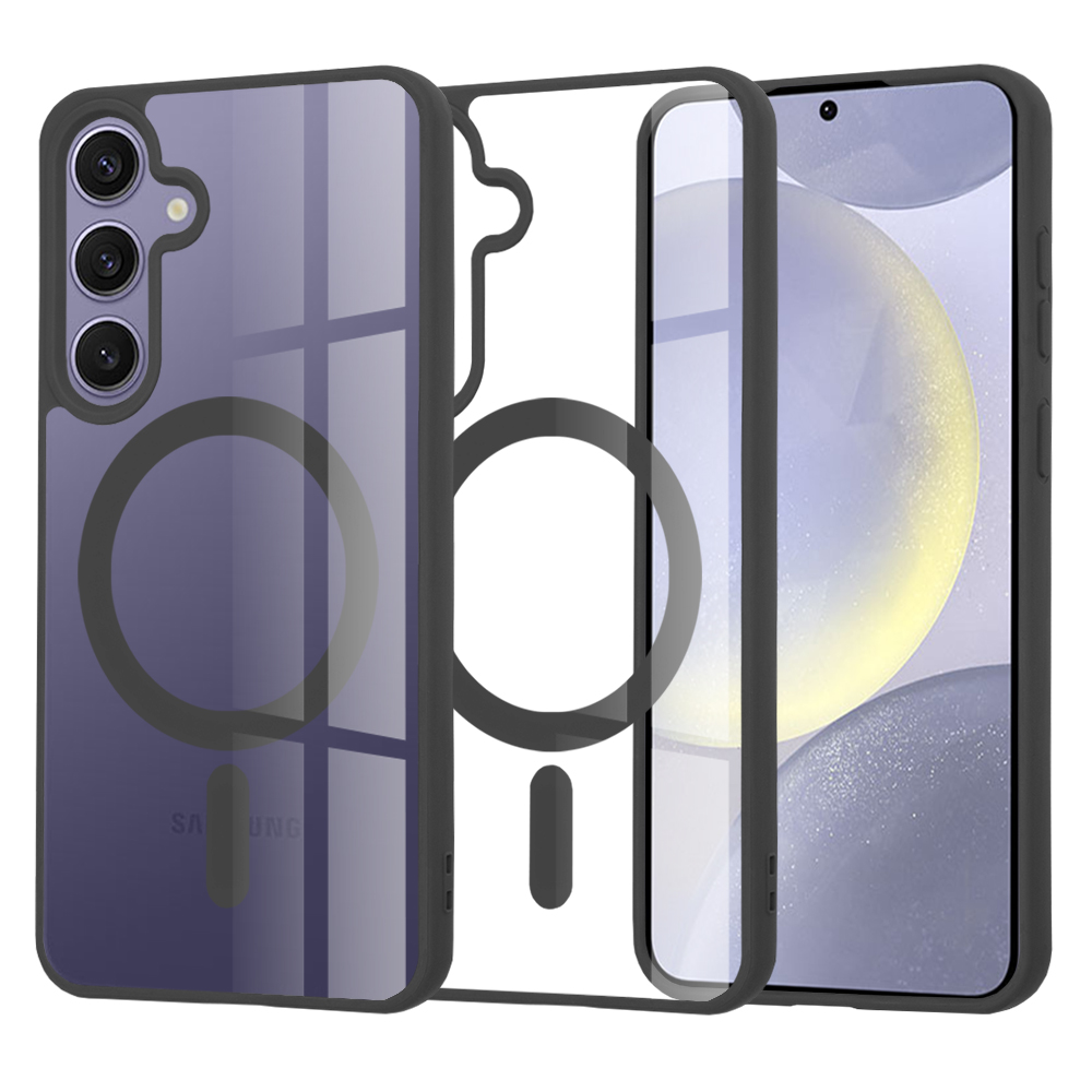 Pouzdro Techsuit MagSafe Pro se pyšní transparentní zadní stranou, která nechá vyniknout originální barvu a design vašeho telefonu Samsung Galaxy S24 Plus. Okraje krytu jsou vyrobeny z odolného, pružného materiálu v černé barvě, který zajišťuje pevný úchop a absorbuje nárazy. Integrovaný MagSafe kroužek je diskrétně umístěn na zadní straně a umožňuje snadné a bezpečné přichycení MagSafe příslušenství, jako jsou bezdrátové nabíječky nebo peněženky. Kryt je navržen s přesnými výřezy pro všechny konektory, mikrofony, reproduktory a fotoaparáty, což zaručuje plnou funkčnost telefonu bez omezení. Tlačítka hlasitosti a napájení jsou chráněna, přesto si zachovávají jistý a příjemný stisk. Zvýšené okraje kolem displeje a modulu fotoaparátu poskytují dodatečnou ochranu proti poškrábání při položení telefonu na rovný povrch.