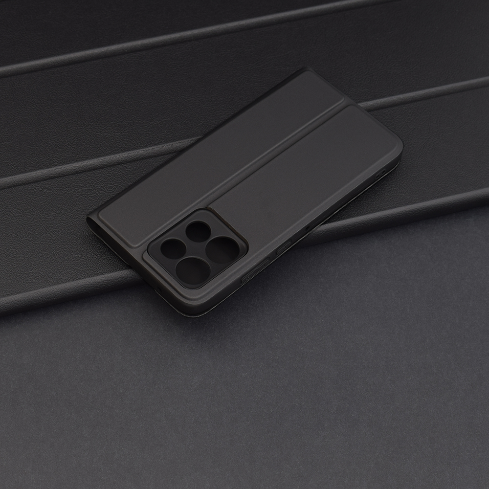 Pouzdro Techsuit Magskin Book se vyznačuje minimalistickým a sofistikovaným designem. Jeho matný povrch v černé barvě působí elegantně a je příjemný na dotek, zároveň odolává otiskům prstů a drobným škrábancům. Jedná se o typ "book" pouzdra, které chrání jak zadní stranu telefonu, tak i jeho displej díky přední odklápěcí části. Přesné výřezy jsou navrženy tak, aby dokonale pasovaly na konektory, mikrofony, reproduktory a fotoaparáty, což zajišťuje neomezenou funkčnost vašeho zařízení. Oblast kolem fotoaparátu je precizně zpracovaná a mírně zvýšená, aby poskytovala extra ochranu čočkám před poškrábáním při položení telefonu na rovný povrch. Tlačítka telefonu zůstávají snadno přístupná a zachovávají si svůj jistý stisk.