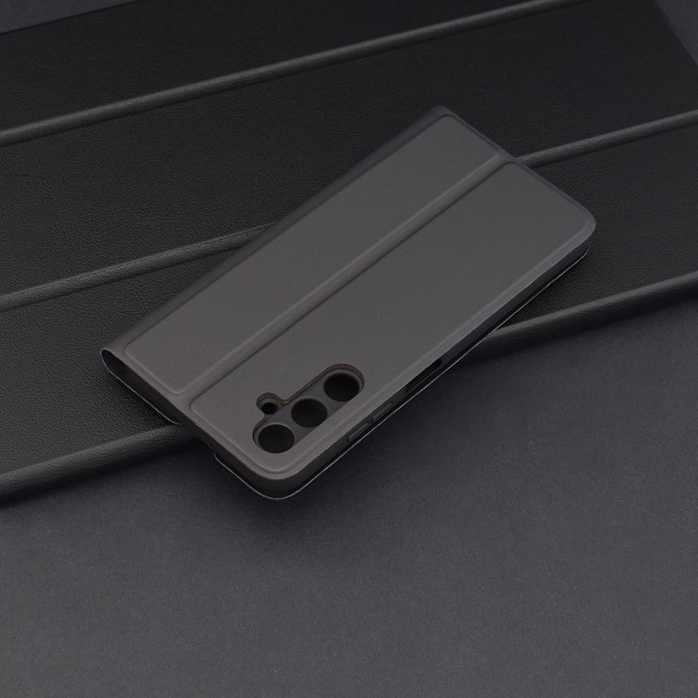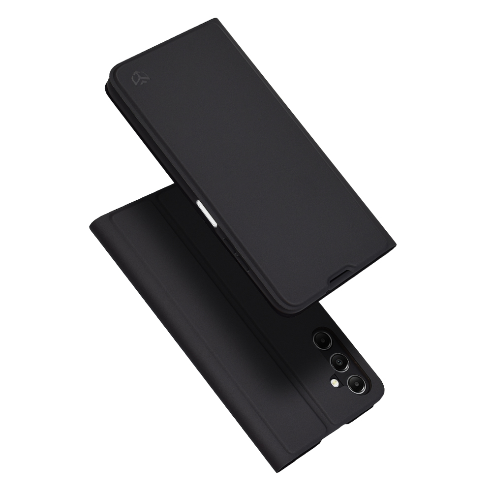 Pouzdro Techsuit Magskin Book v elegantní černé barvě se pyšní minimalistickým a sofistikovaným designem. Jeho hladký, matný povrch působí luxusním dojmem a je příjemný na dotek. Jedná se o "book-style" pouzdro, které kompletně obepíná váš telefon a poskytuje mu tak ochranu ze všech stran – displeje, zadní strany i bočních hran. Na přední straně pouzdra je decentně vyraženo logo Techsuit, které podtrhuje jeho originalitu a kvalitu. Přesné výřezy zajišťují bezproblémový přístup ke všem portům a fotoaparátu, zatímco integrovaná ochrana tlačítek zachovává jejich citlivost a jistotu stisku. Díky svému promyšlenému designu pouzdro nejen chrání, ale také doplňuje estetiku vašeho Samsung Galaxy A05s.
