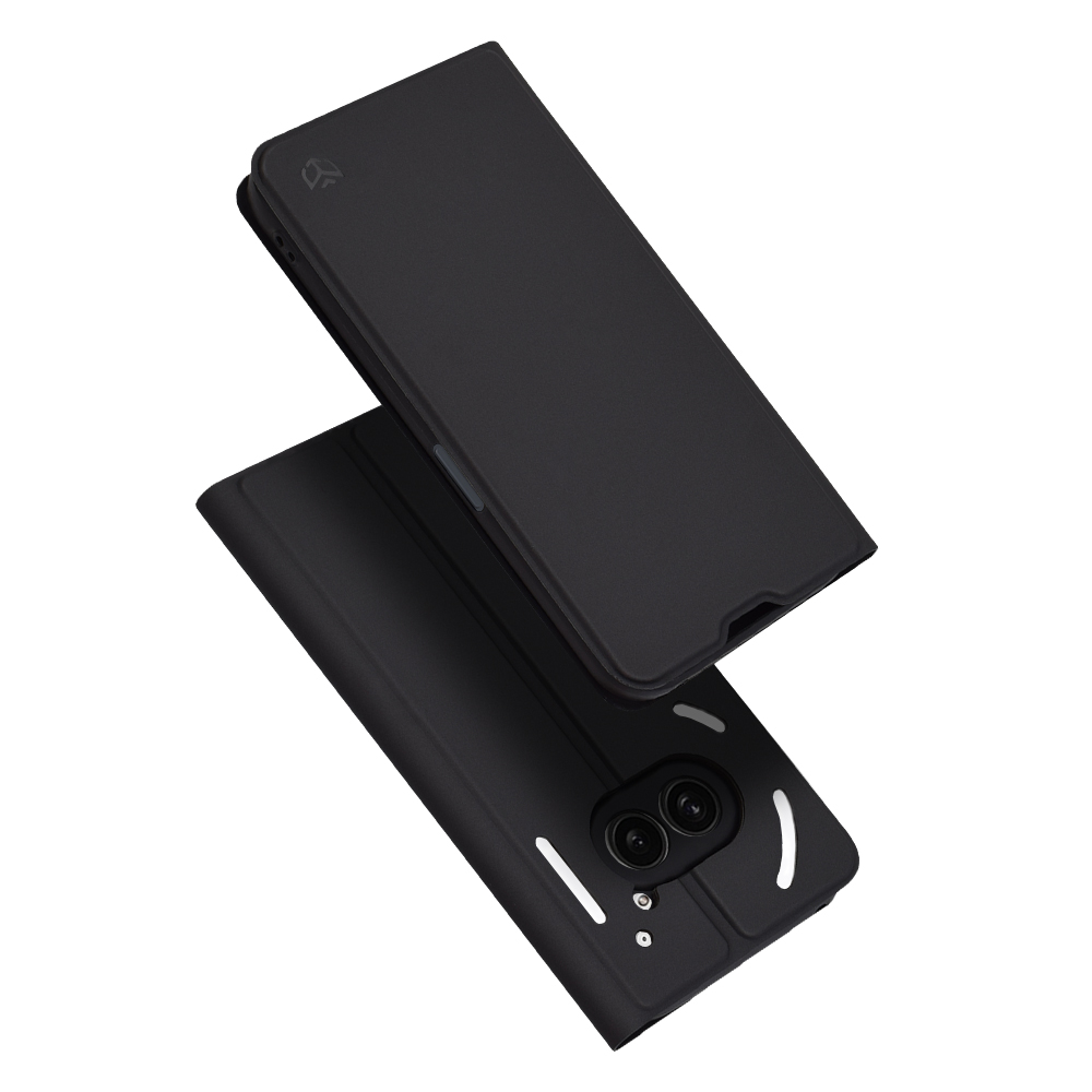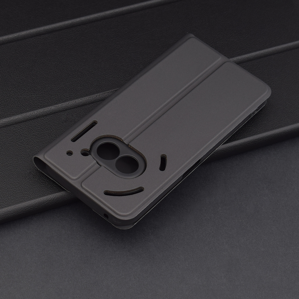 Pouzdro Techsuit Magskin Book se vyznačuje minimalistickým a elegantním designem v matně černé barvě, která podtrhuje moderní vzhled telefonu. Jeho precizní zpracování zajišťuje dokonalé padnutí a snadný přístup ke všem funkcím telefonu. Na zadní straně naleznete přesné výřezy pro duální fotoaparát, blesk a charakteristické prvky Glyph rozhraní, které zůstávají plně funkční a viditelné. Vnitřní strana flipového krytu je vybavena praktickou kapsou na kartu, ideální pro platební kartu nebo doklady. Pouzdro lze navíc snadno složit do praktického stojánku, což oceníte při sledování videí nebo videohovorech. Jistý stisk tlačítek a bezproblémový přístup k nabíjecímu portu jsou samozřejmostí.
