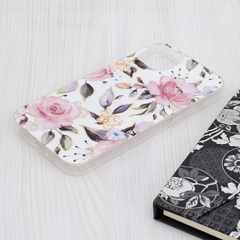 Pouzdro Chloe White se pyšní nádherným květinovým motivem na průhledném podkladu, který nechá vyniknout originální barvu vašeho telefonu. Dominantou designu jsou jemné růžové růže, doplněné o decentní lístky v odstínech šedé a fialové, a drobné kvítky v meruňkových a světle modrých tónech. Celý vzor je elegantně podtržen tenkými zlatými obrysy, které dodávají pouzdru luxusní a nadčasový vzhled. Je to ideální volba pro každého, kdo chce svému zařízení propůjčit osobitý a ženský šarm.
