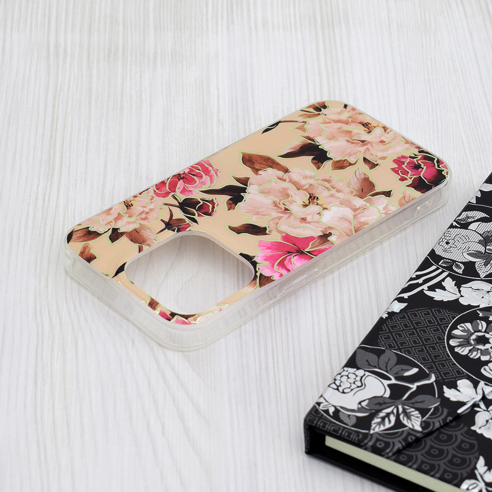 Design Mary Berry Nude okouzlí jemným, ale výrazným květinovým vzorem na světle béžovém až nude podkladu. Dominují mu rozkvetlé pivoňky a růže v odstínech krémové, světle růžové a sytě malinové, doplněné o tmavě hnědé listy a zlatavé kontury, které dodávají celému motivu luxusní a umělecký nádech. Tento vzor propůjčuje vašemu telefonu jedinečný a ženský vzhled, který se hodí pro každou příležitost.