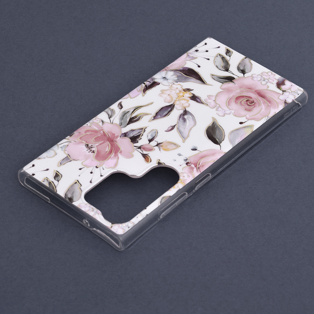 Tento elegantní kryt z mramorové série "Chloe White" se pyšní jemným květinovým motivem na bílém podkladu. Design je tvořen růžovými květy, doplněnými šedými a béžovými lístky a drobnými zlatými detaily, které dodávají celkovému vzhledu luxusní a sofistikovaný nádech. Díky svému nadčasovému vzhledu je ideálním doplňkem pro každodenní nošení i speciální příležitosti.
