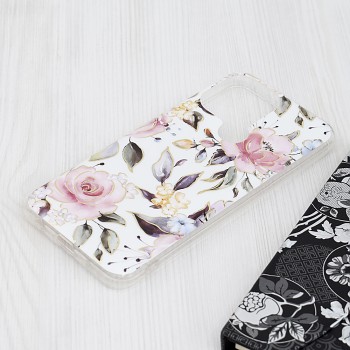 Design "Chloe White" se pyšní jemným květinovým vzorem na čistě bílém podkladu. Dominují mu nádherné růžové růže doplněné drobnými žlutými a bílými kvítky a elegantními zelenohnědými listy. Celý vzor je decentně zvýrazněn jemnými zlatými obrysy, které dodávají pouzdru luxusní a sofistikovaný vzhled. Jedná se o ideální volbu pro ty, kteří hledají pouzdro s ženským a nadčasovým designem.