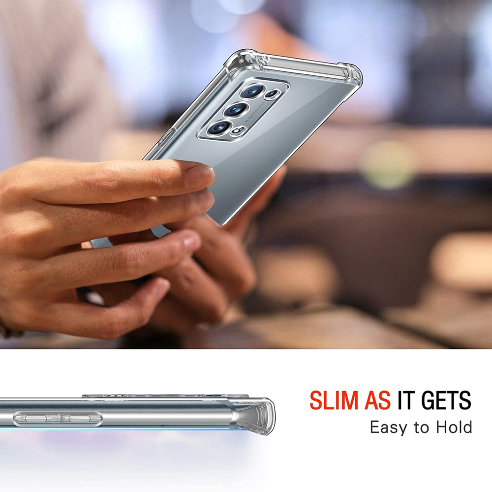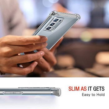 Kryt Techsuit se pyšní křišťálově čistým průhledným provedením, které nechá vyniknout originální krásu vašeho telefonu Oppo Reno6 Pro 5G (Snapdragon). Je vyroben z flexibilního TPU materiálu, který je příjemný na dotek a zajišťuje snadnou instalaci. Klíčovým prvkem designu jsou zesílené rohy, které efektivně absorbují nárazy a minimalizují riziko poškození při pádech.